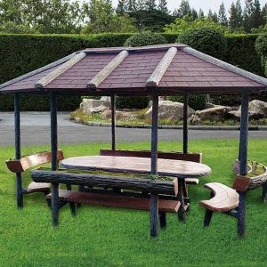Gartenbank mit Rückenlehne Parkbank L = 2 m Eiche + Robinie Variante Galahad 1 organische Form mit Lasur