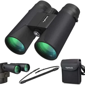 Kylietech Fernglas 12×42 HD Kompakte Ferngläser wasserdicht für Vogelbeobachtung, Jagd, Wandern, Sightseeing, FMC-Linse Feldstecher inkl. Tragetasche, Tragegurt und Smartphone-Adapter