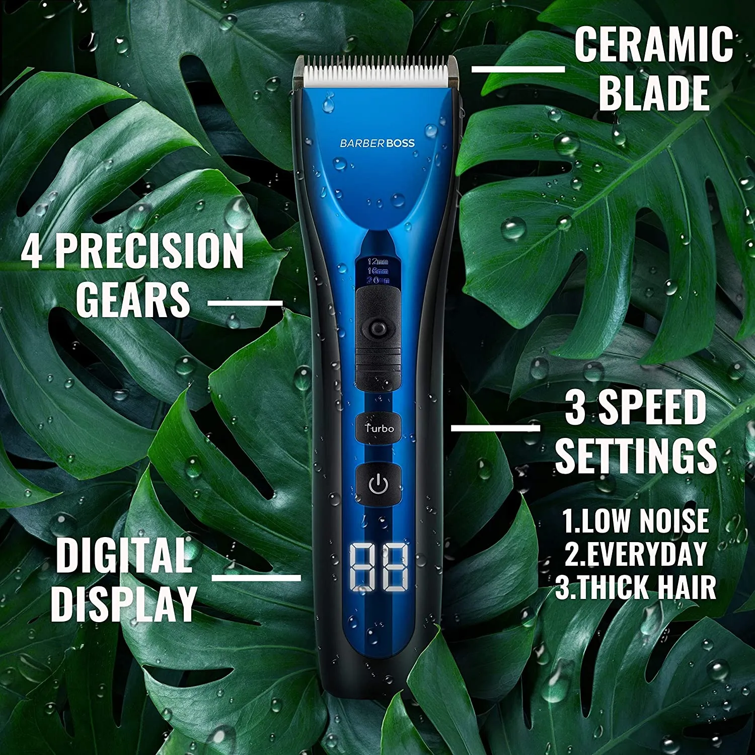 BarberBoss Haarschneidemaschine Profi Wasserdicht Haarschneider Herren Wiederaufladbar Haartrimmer Drei Geschwindigkeitseinstellungen Langhaarschneider Elektrisch Bartschneider Schnurlos Barttrimmer