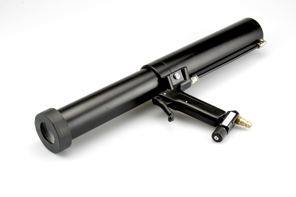 Die Materialaustrittsgeschwindigkeit wir am Drehregler am Pistolengriff eingestellt. Hier erfolgt eine Druckreduzierung der Druckluft. Dieses hochwertige Arbeitsgerät zeichnet sich durch gute Handhabung und Stabilität aus. Durch die Rohrhülse mit stabilem Gewindeverschluß kann ein