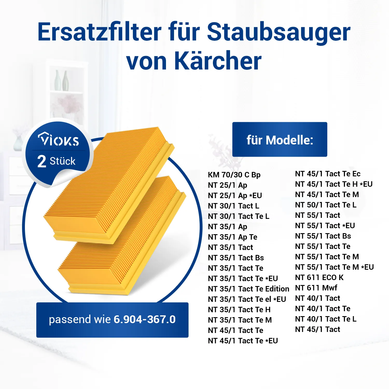 Flachfaltenfilter 2x wie Kärcher 6.904-367.0 für NT361 NT561 NT661 Staubsauger
