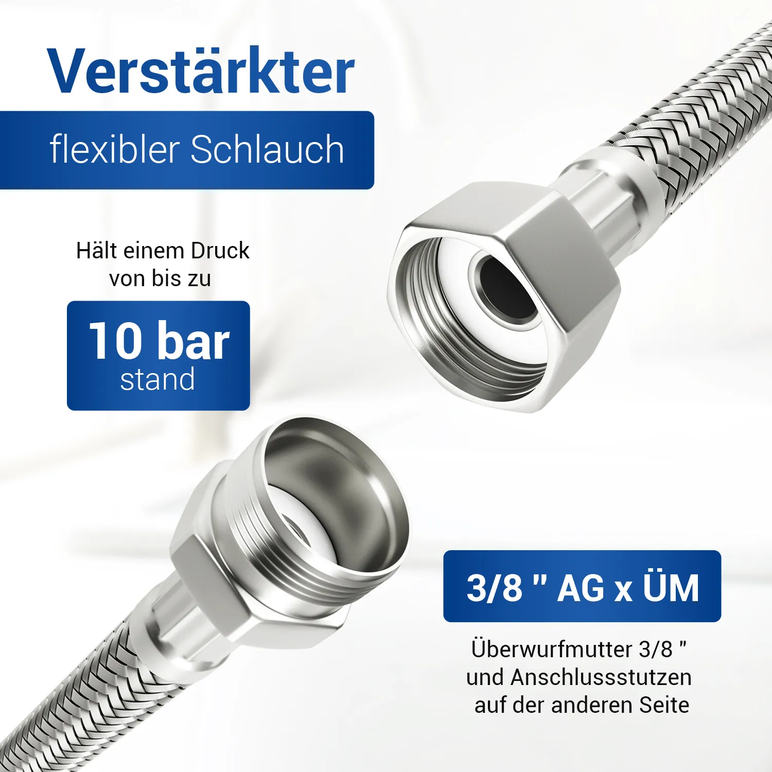 Flexschlauch 200 cm mit 3/8″ Überwurf und 3/8″ Außengewinde Schlauch für Sanitär