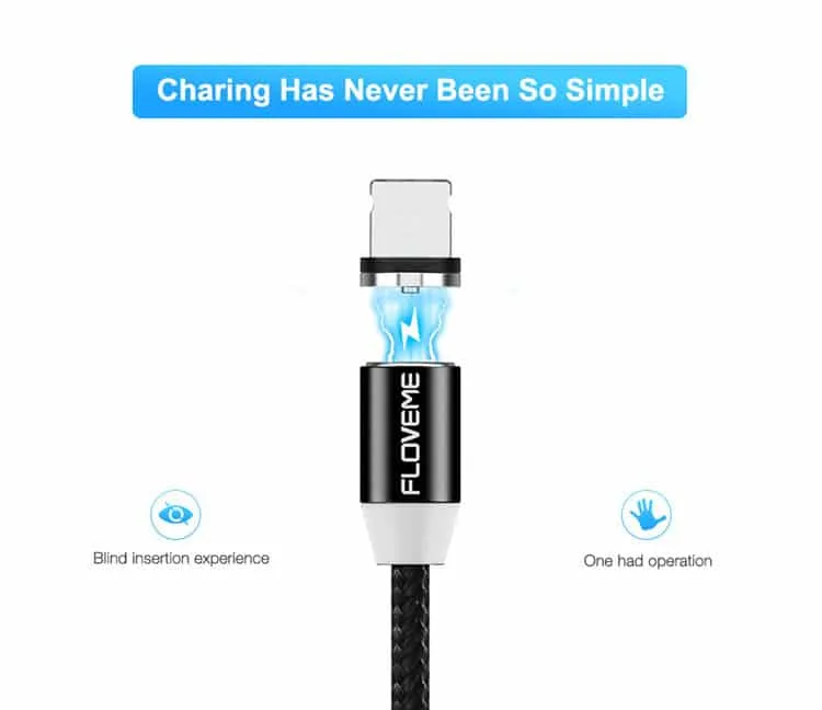 Das Magnetladekabel hat eine starke Magnetkraft und hat einen niedrigen Widerstandswert, der schneller ist als die meisten USB-Kabel. - Einhand Bedienung & LED-Leuchte