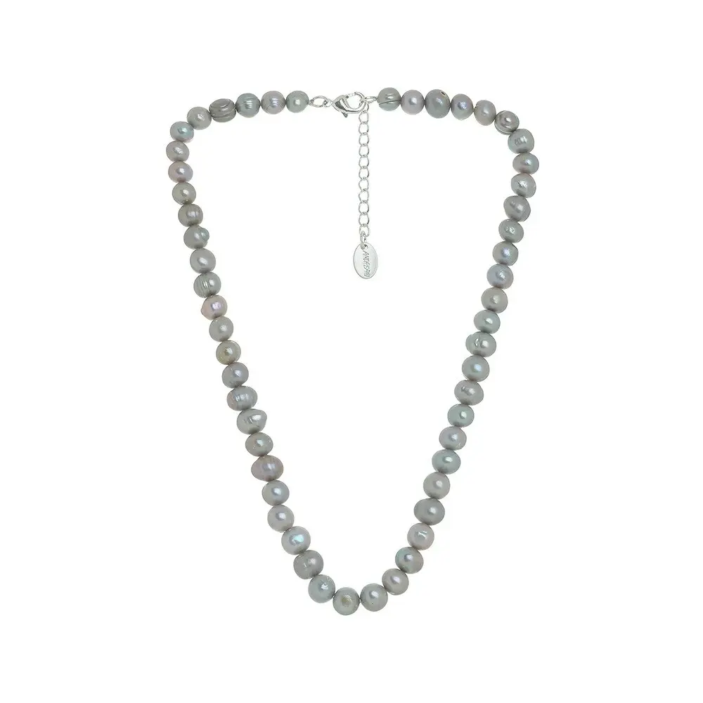 Wunderschöne Halskette aus echten Süsswasserperlen hellgrau. Länge Halskette ca. 45cm, Durchmesser Perlen 9-10mm. Farbe: hellgrau.