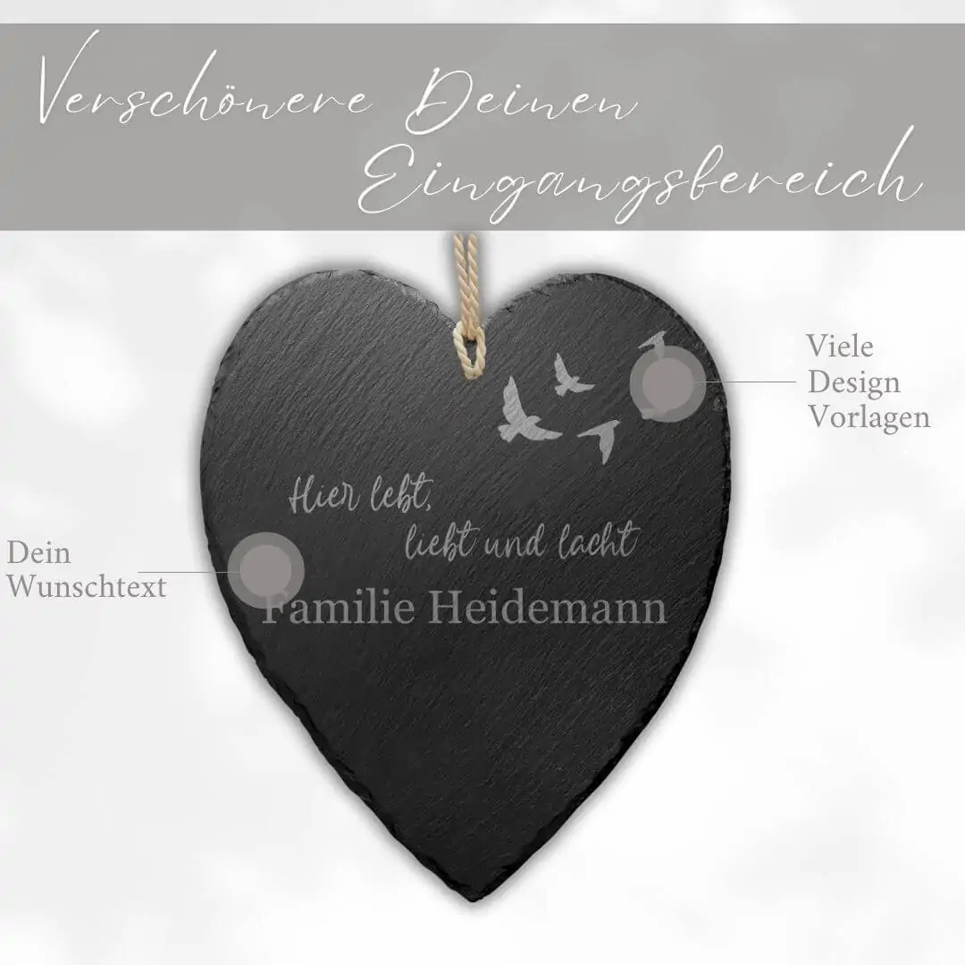 Tipp: Unsere gravierten Aufhängeschilder aus Naturschiefer stellen außerdem auch eine ganz besondere und außergewöhnliche Geschenkidee dar. Bereite Deinen Liebsten mit diesem einmaligen Einzelstück eine langanhaltende Freude.