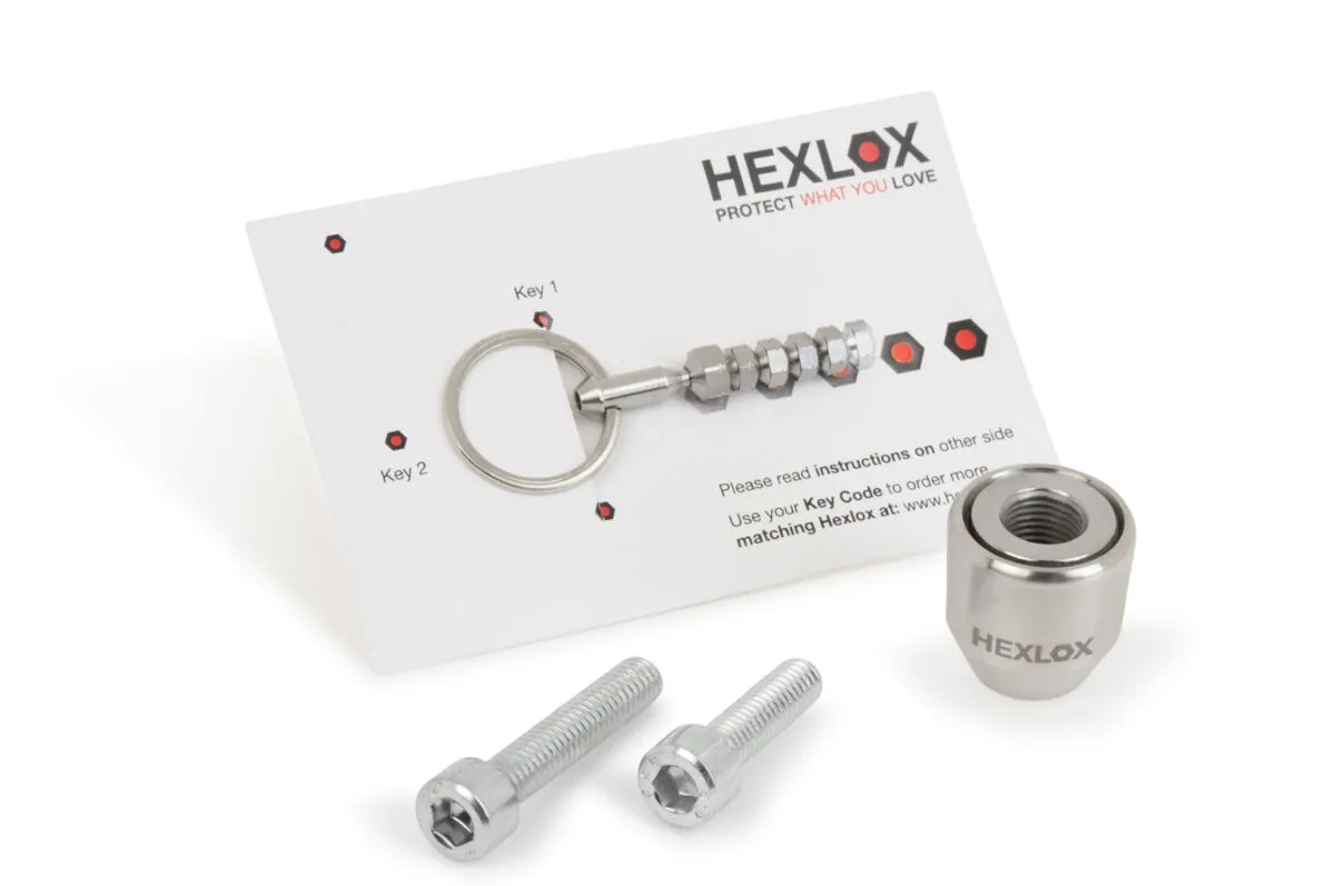 Grundsätzlich werden mit den Hexlox-Sets folgende Komponenten gesichert:Sattel, Sattelstütze, Vorderrad, Hinterrad, Vorbau, E-Bike-Akku.