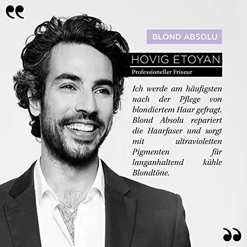• Jede Blondierung macht die Haarfaser brüchig und trocknet sie aus. Sie wird brüchig und verliert ihren Glanz. Entdecken Sie Blond Absolu, die professionelle Pflegeserie für blondiertes oder gesträhntes Haar. Angereichert mit einem Komplex aus Hyaluronsäure und Edelweiss, repariert und stärkt die Pflege das Haar und schützt es vor täglichen Belastungen. Die Pflegeprodukte mit blauen und violetten Pigmenten neutralisieren falsche Reflexe und sorgen für ein strahlendes, kühles Blond.