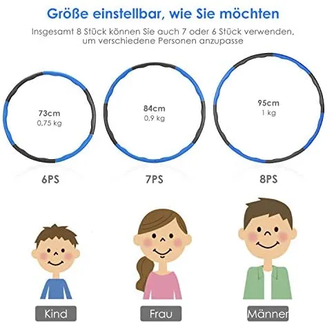 Einstellbare Größe mit 8 abnehmbaren Abschnitten sind leicht zu Indoor-oder Outdoor-Aktivitäten, passt für Erwachsene oder Kinder. Eine gute Übung, um Sie gesund zu halten und schlank zu halten[/vc_column_text][vc_empty_space height=“5px“][vc_column_text]