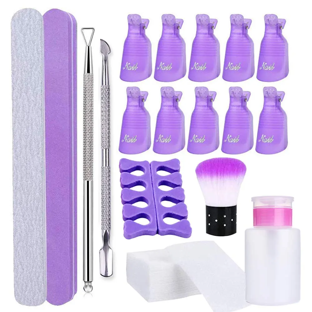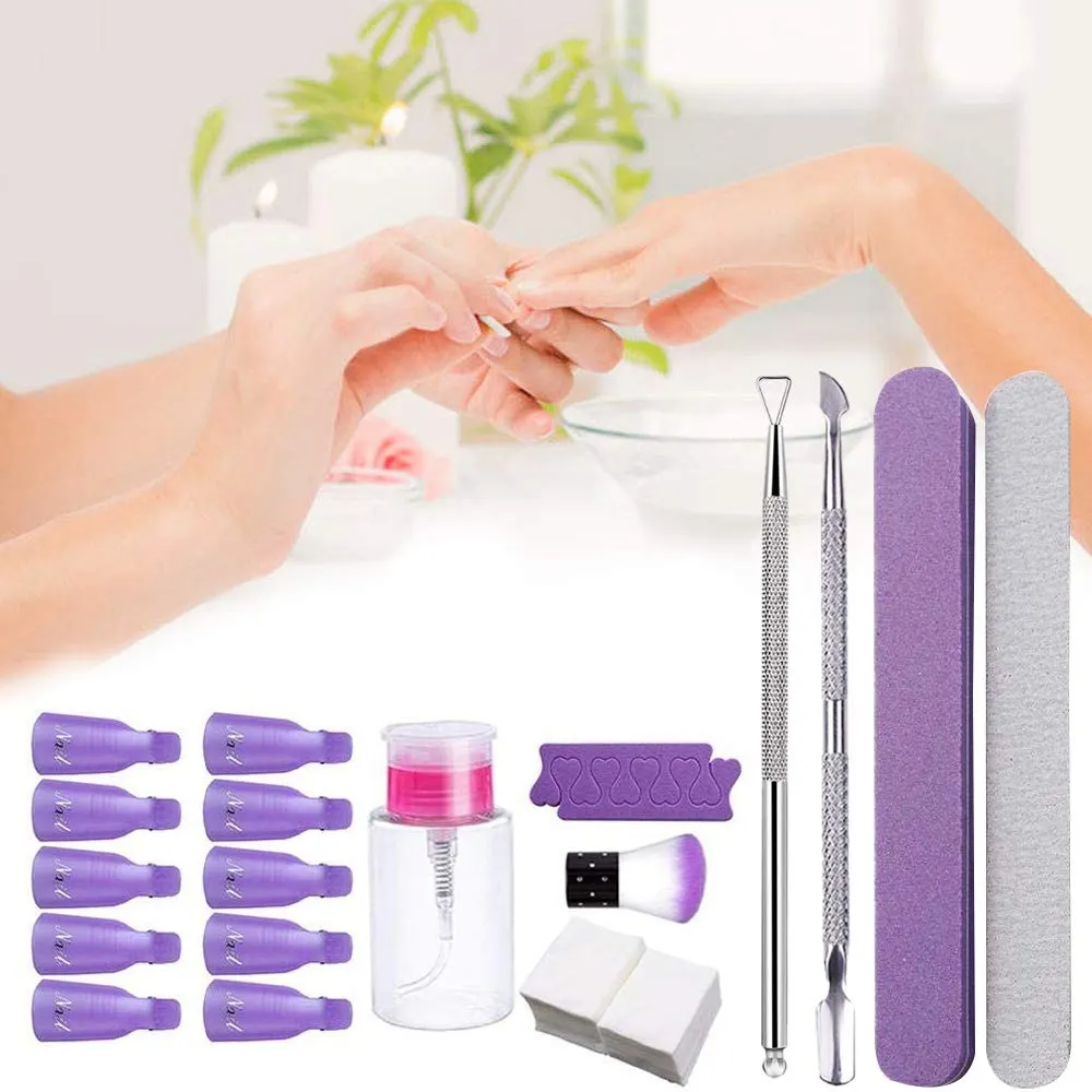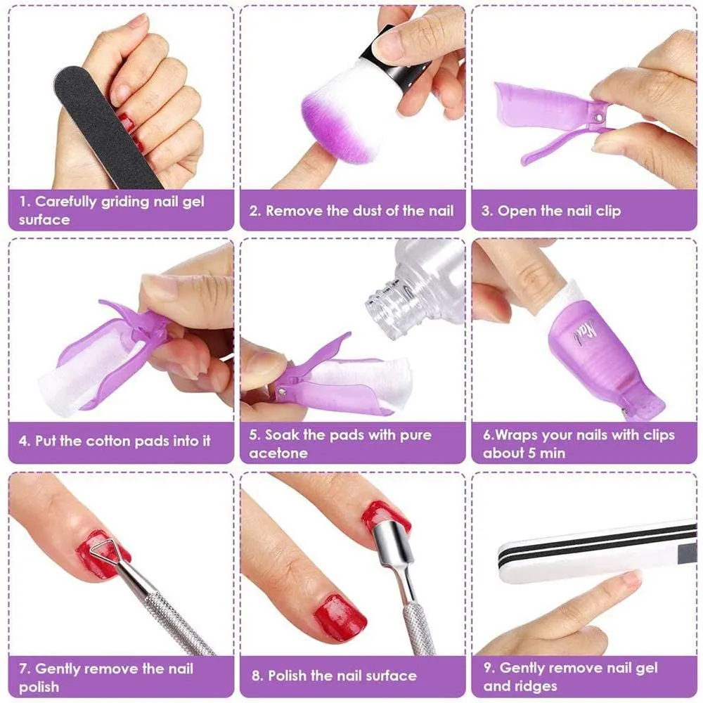 Nagellackentferner Kit mit Nagelclips Kappen,Pinsel,Nagelentferner Wattepads, Nagelfeile, 2-in-1 Nagelhautschaber und Pusher, Nagelseparator, Spenderflasche