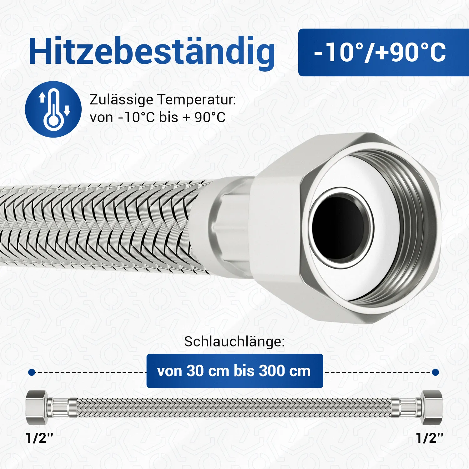 Panzerschlauch 2,5 m mit 2x 1/2 Zoll Überwurf für Waschmaschine, Geschirrspüler, Waschbecken