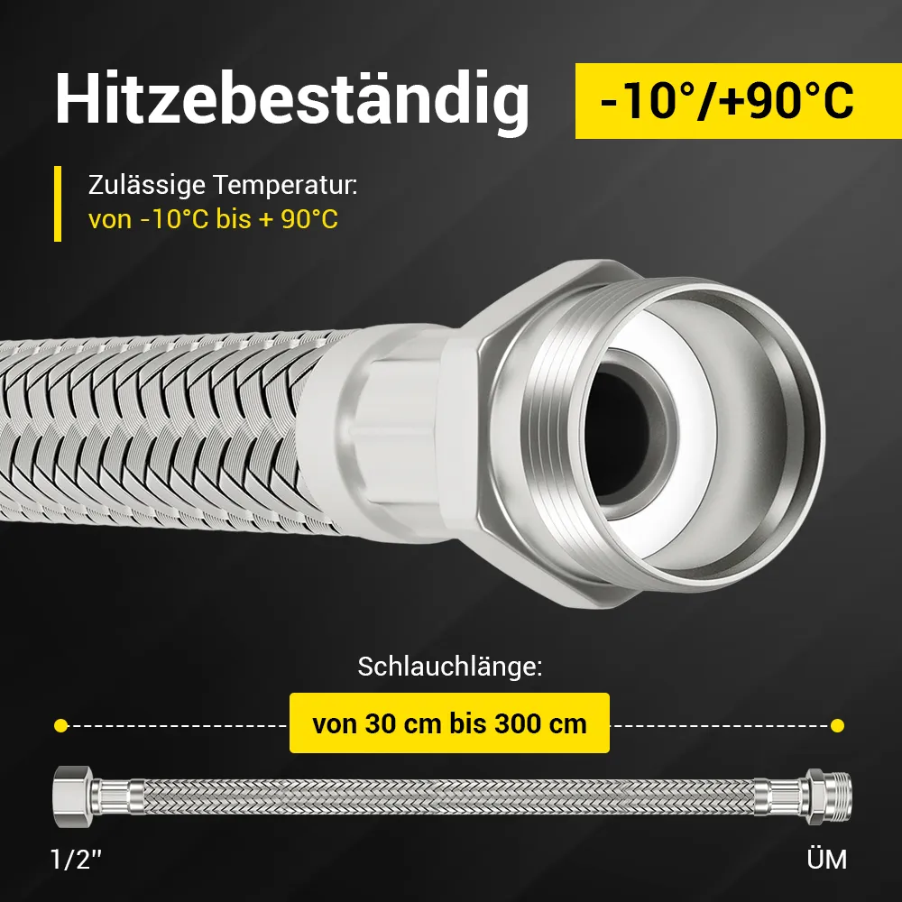 Hier wird einen Flexschlauch angeboten. Er bleibt auch bei hohem Wasserdruck standhaft. Der robuste Panzerschlauch ist ein verlässlicher Partner für sanitäre Anlagen. Den Flexschlauch verlegt man einfach am gewünschten Ort. Dabei passt er sich an seine Umgebung an und bleibt doch bombenfest.
