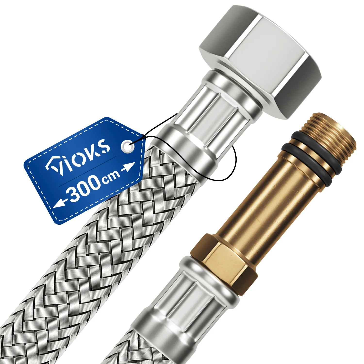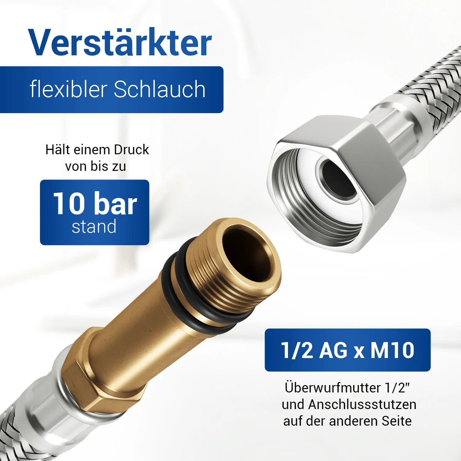 Panzerschlauch 300 cm mit 1/2 Zoll Überwurf M10 Außengewinde für Sanitär