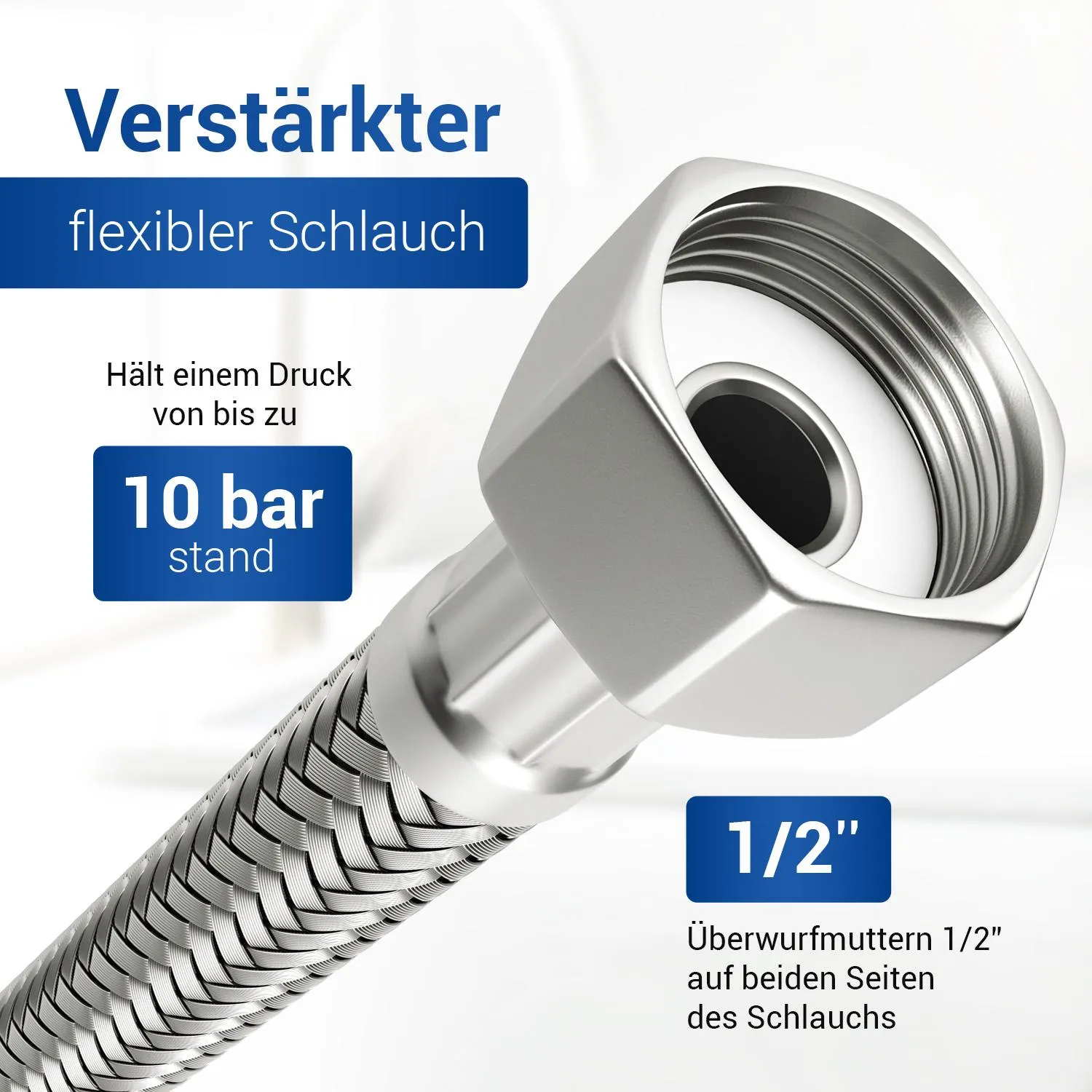 Panzerschlauch 70 cm Wasserschlauch mit 1/2 Zoll Überwurfmuttern