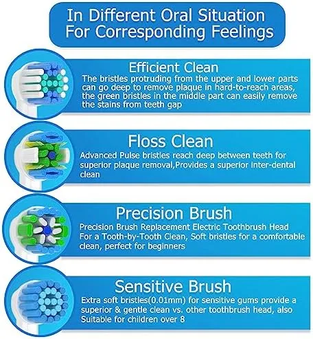 1.Sensitive elektrische Zahnbürsten-Ersatzköpfe sorgen für eine hervorragende und hervorragende Mund- und Zahnreinigung und sind dennoch sehr sanft zu Zahnfleisch und Zähnen.