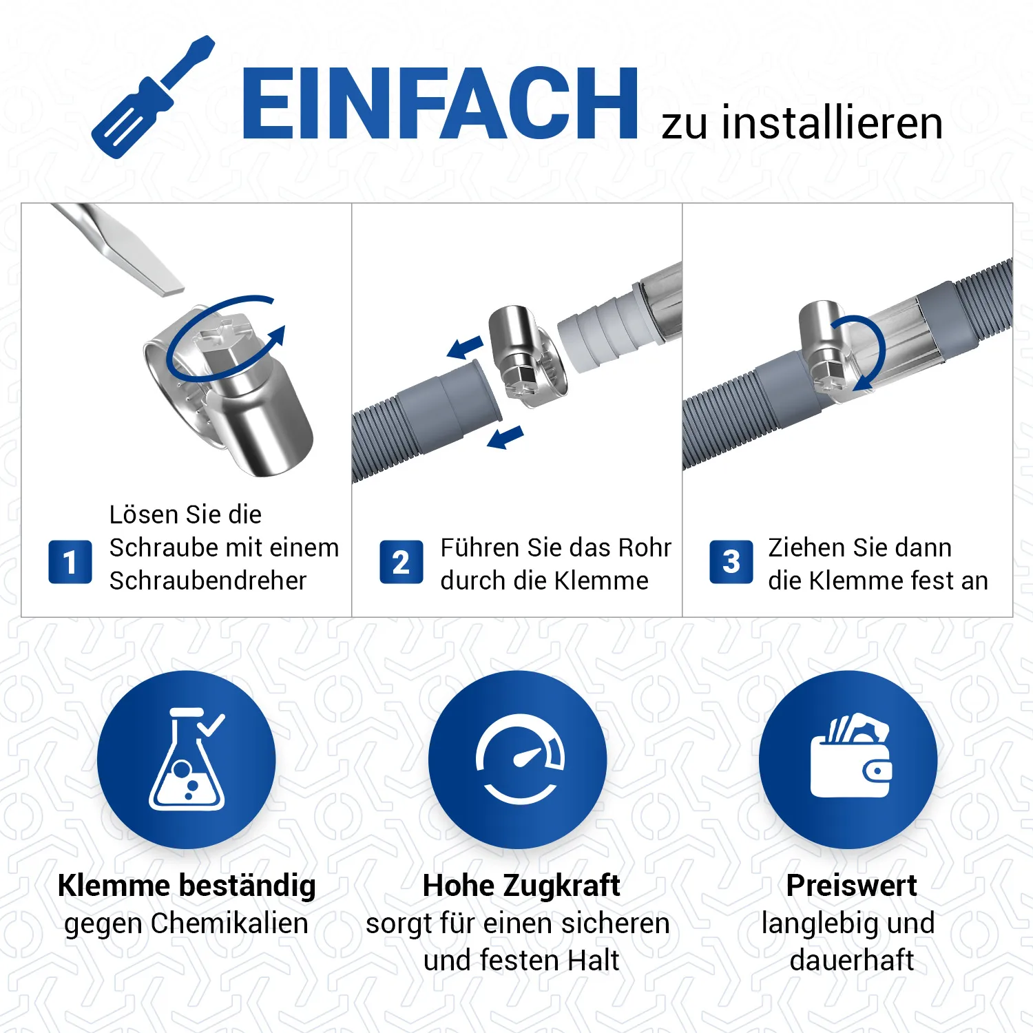 Schlauchklemme 2Stk Schelle Chromstahl W2 für Schlauch Geschirrspüler