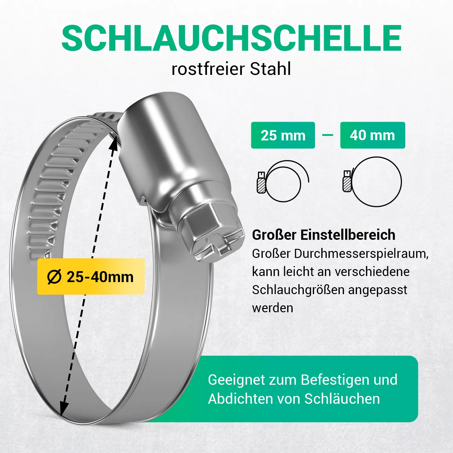 Schelle für Schläuche mit 25 – 40 mm Außendurchmesser.