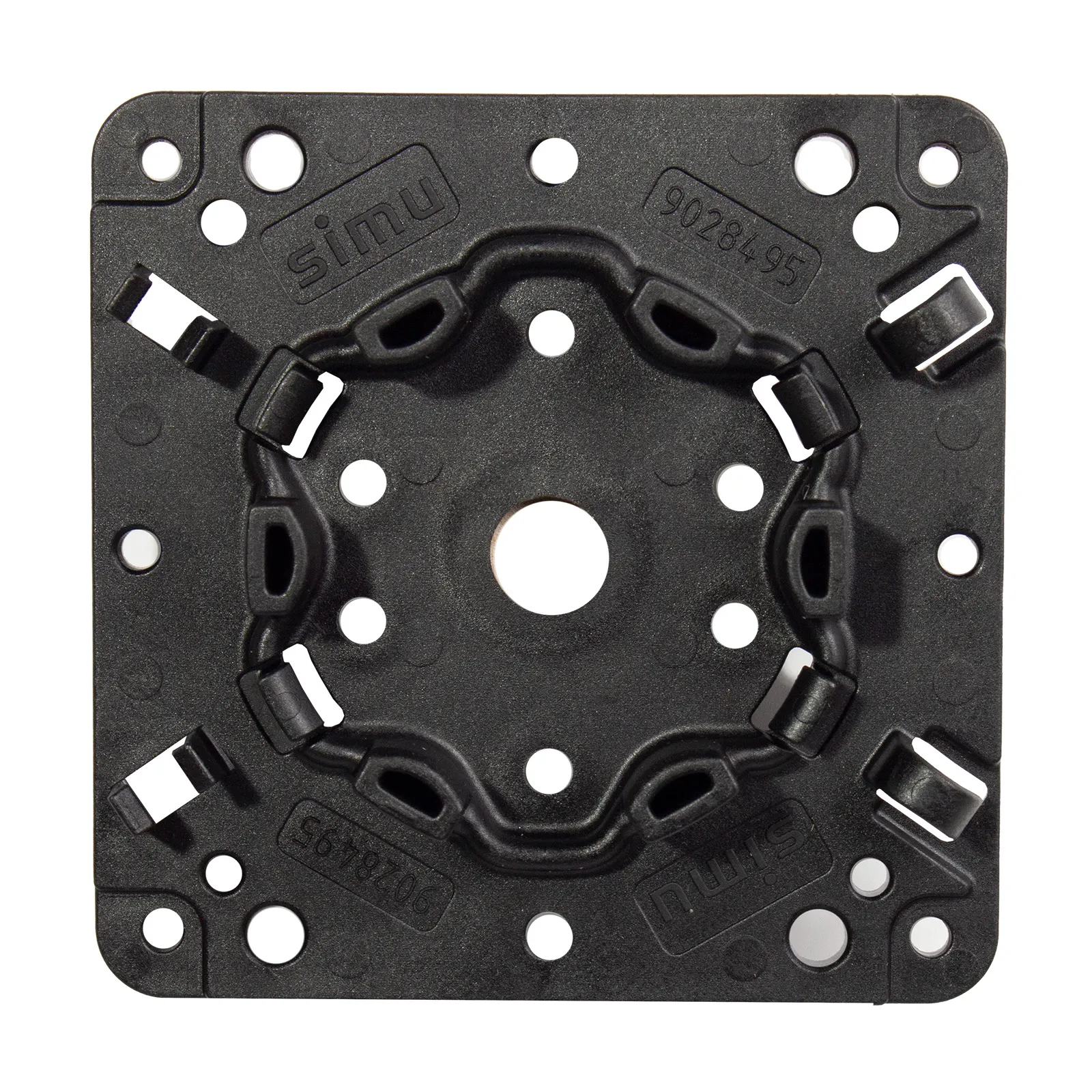 Simu Universal Motorlager geeignet für den Einsatz mit Somfy Sternkopf. Nutzbar für Motoren mit einer Leistung von bis zu 30 Nm. Äußerst flexible Montagemöglichkeiten durch 22 Vorbohrungen. Das Universal Blendkastenlager besteht aus einem stabilen PA66 GF30 Kunststoff.