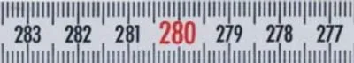 Skalenbandmaße von rechts nach links, Stahl weißlackiert, mit Selbstklebefolie, Breite 10 mm, Länge 5 m