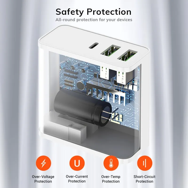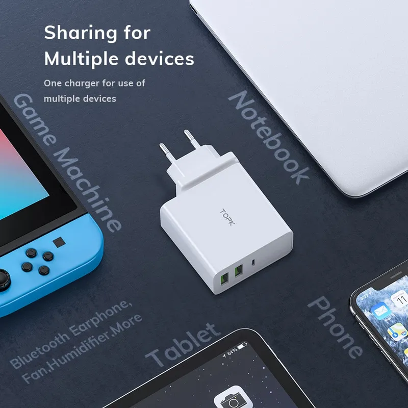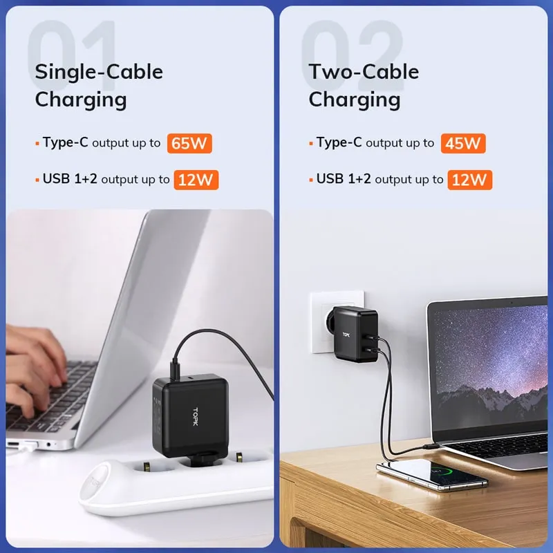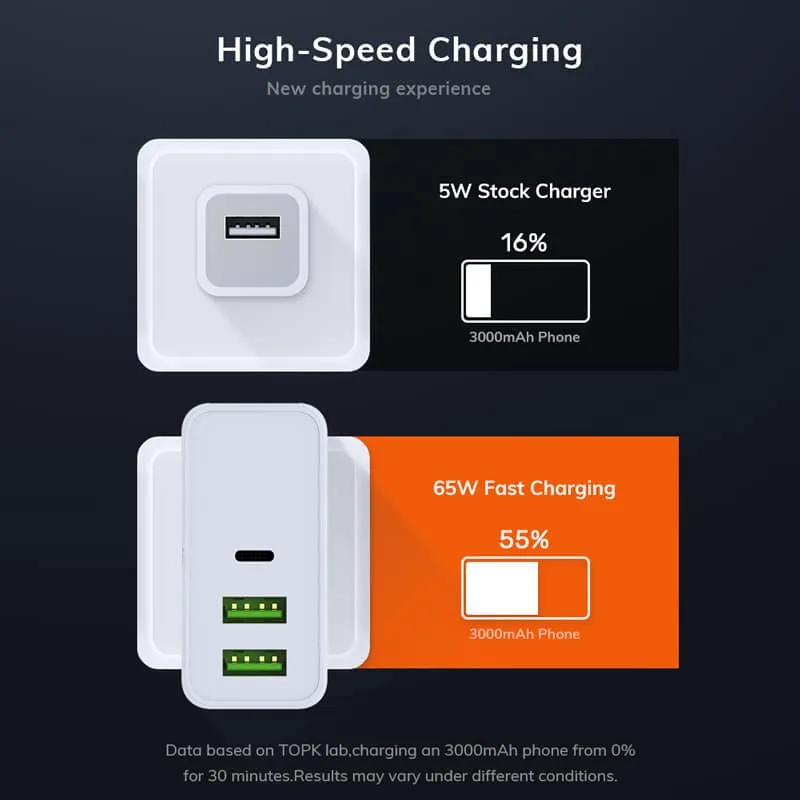 – 1 Stück TOPK 3-Port USB 65W PD Typ-C QC 3.0 Schnellladegerät