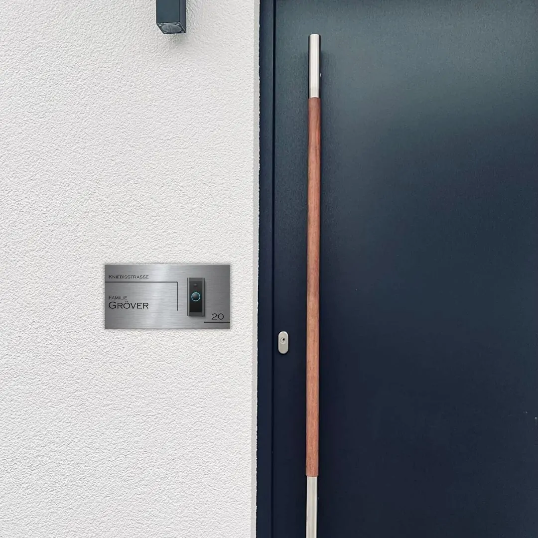 Du suchst eine stilvolle Möglichkeit um Deine Funkklingel im Hauseingang zu befestigen? Gestalte eine Klingelplatte für Deine Funkklingel und personalisiere sie genau nach Deinen Wünschen. Unsere hochwertigen Funkklingelschilder aus massivem V2A Edelstahl machen Deine Doorbell Türklingel zu einem echten Hingucker im Eingangsbereich.