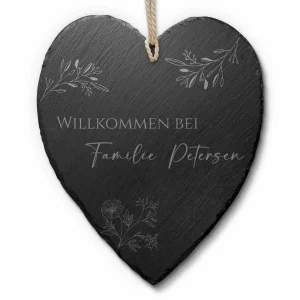 Herz aus Schiefer zum aufhängen mit Kordel in 22,5×27 cm